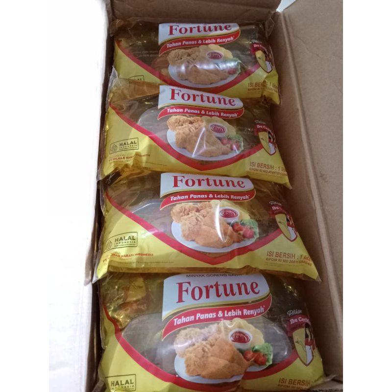 fortune adalah salah satu merk minyak goreng sangat di gemari dan sangat laris manis berat 1 liter dan tahan panas..sehingga awet saat menggoreng