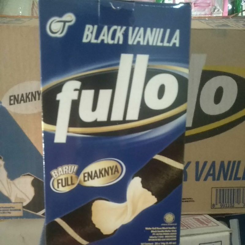 fullo black vanilla, wafer roll rasa black vanilla 1 box isi 20 pcs