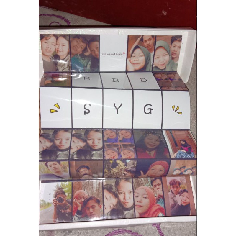 giftbox custum dapat tali rami pengikat. kartu ucapan . box hologram size 19×6cm . untuk 20poto+5kata-kata sesuai riques 100%real pict