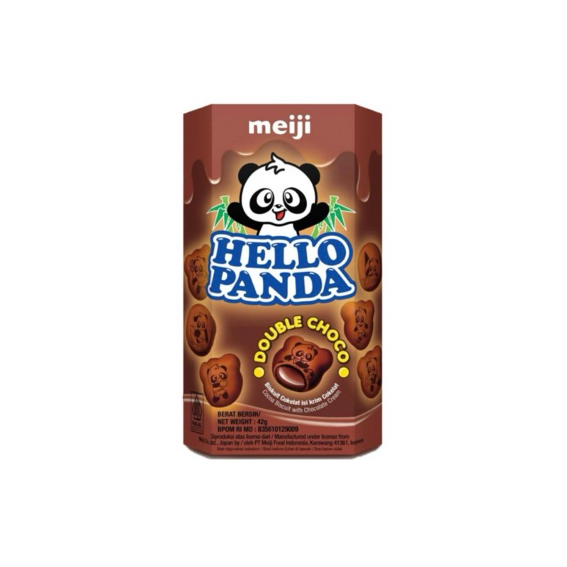 Hello Panda 42 gram adalah camilan biskuit isi krim yang diproduksi oleh Meiji Seika, Jepang. Setiap biskuit berbentuk bulat kecil dengan lapisan luar shortbread renyah dan isian krim lembut di dalamnya. Permukaan biskuit dihiasi dengan ilustrasi panda yang sedang melakukan berbagai aktivitas, seperti bermain olahraga atau alat musik, menambah daya tarik visual terutama bagi anak-anak.