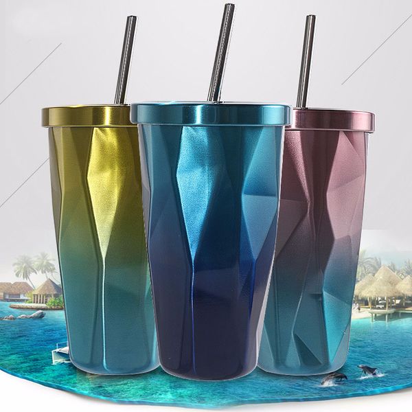hho-массажер из нержавеющей стали с соломой - горячая и холодная двустенных питьевой чашкой кофе кружка 500ml неровного ромб с крышкой