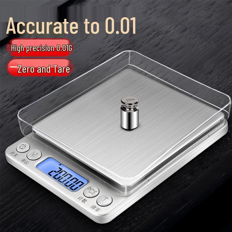 i2000 Прецизионные кухонные весы 0,01 г - Идеально подходят для взвешивания ювелирных изделий, выпечки, продуктов питания и чая. 1kg/0.1g Rechargeable with USB and Two Trays