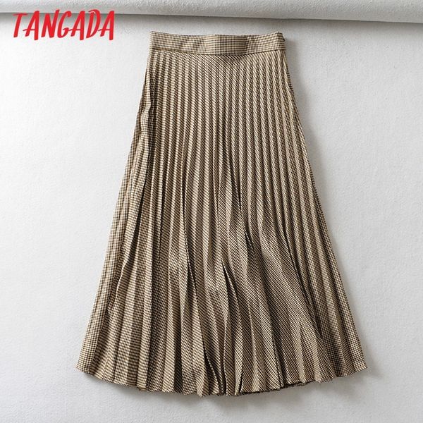 tangada women plaid pleated midi skirt faldas mujer vintage side zipper office ladies elegant chic mid calf skirts 6a01, Black
