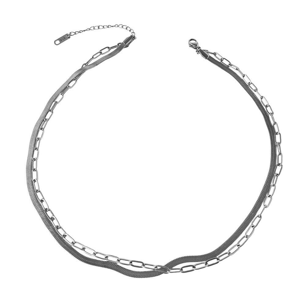 ins новая модная универсальная цепочка на ключицу, длинная цепочка в форме лезвия, двухслойное ожерелье из титановой стали и 18-каратного золота для женщин