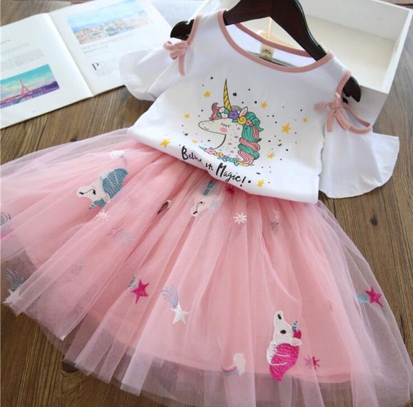 ins unicorn девочек платье летом детская новая принцесса юбка среднего и малые детская верхняя чистая пряжа юбки два кусок набора, White