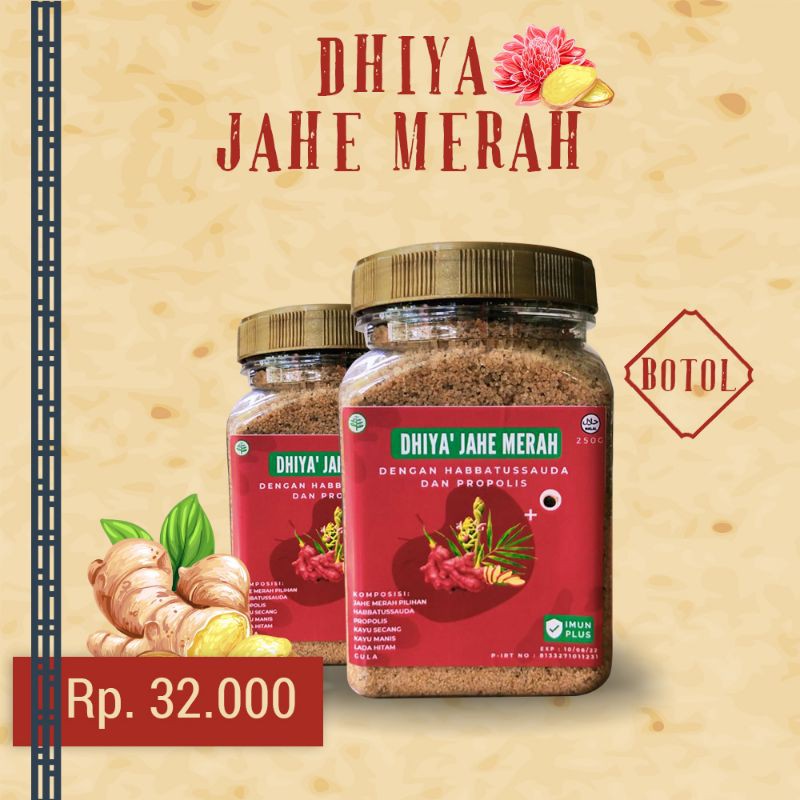 Dhiya Jahe Merah adalah minuman herbal instan alami yang sangat baik untuk kesehatan, apalagi ditengah pandemi Covid-19 ini, Dhiya Jahe juga sangat praktis tinggal seduh.