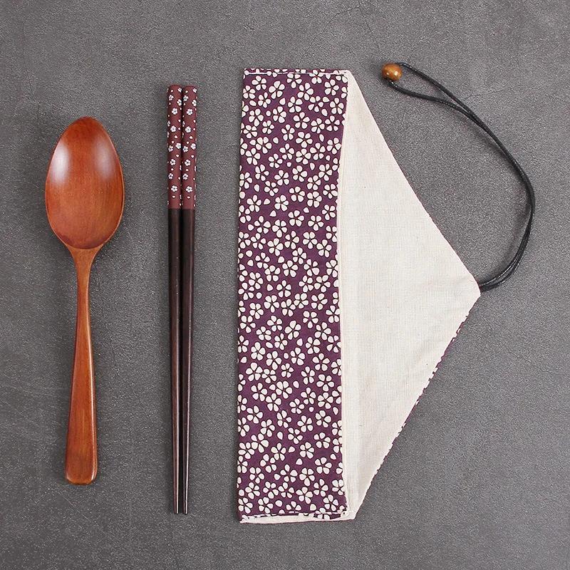 japen палочки для еды столовые приборы деревянные наборы столовых приборов с ложкой вилкой тканевая сумка экологически чистые дорожные портативные