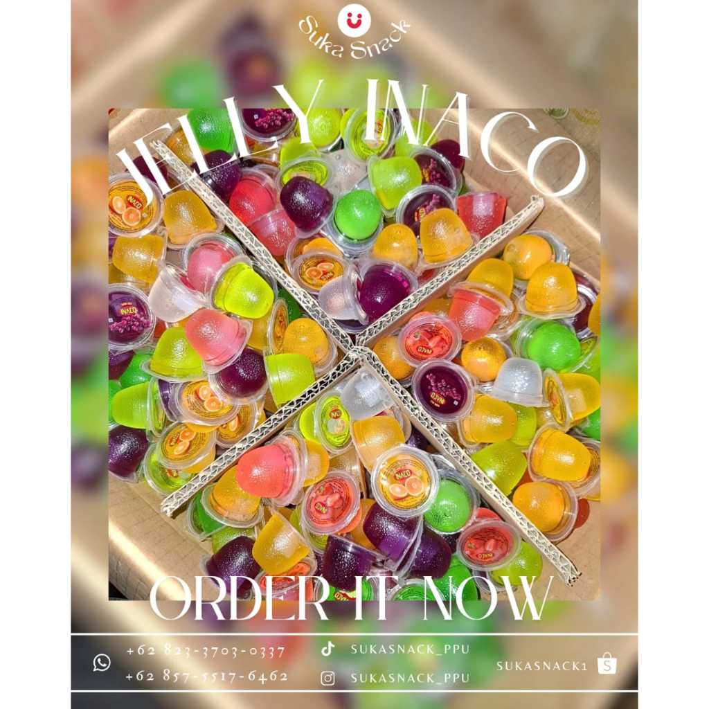 jelli aneka rasa dengan isian nata de coco di tengahnya, produknya inaco, berat bersih produk 500gr.