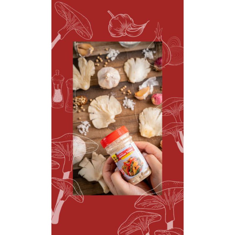 tepung jamur tiram ,tepung tapioka ,gula ,garam ,merica ,bawang merah ,bawang putih.