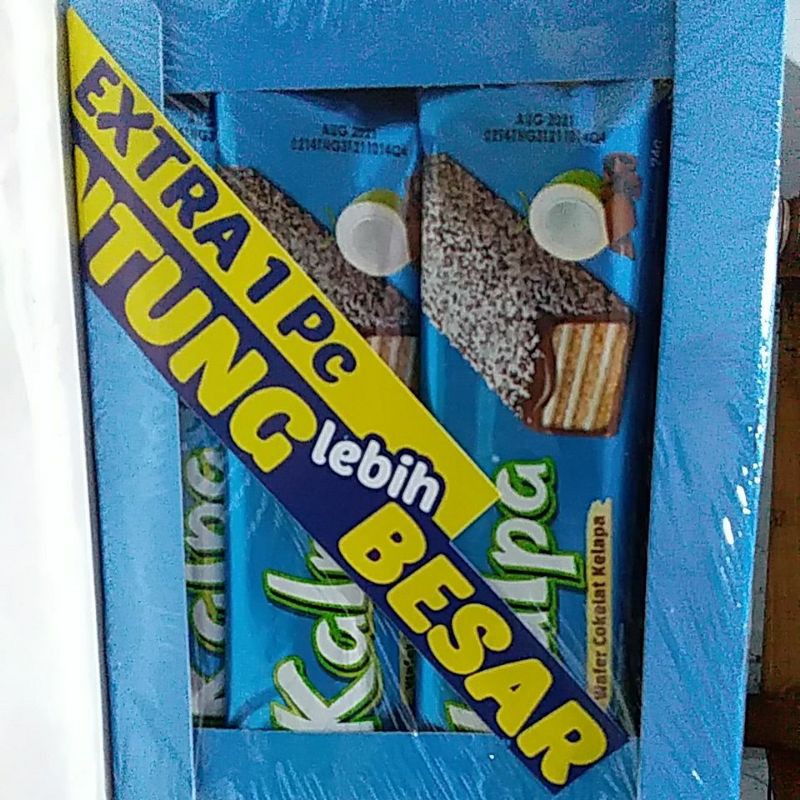 wafer coklat kelapa rasakan sensasi taburan kelapa renyah di atas wafer berlapis cokelat tebal