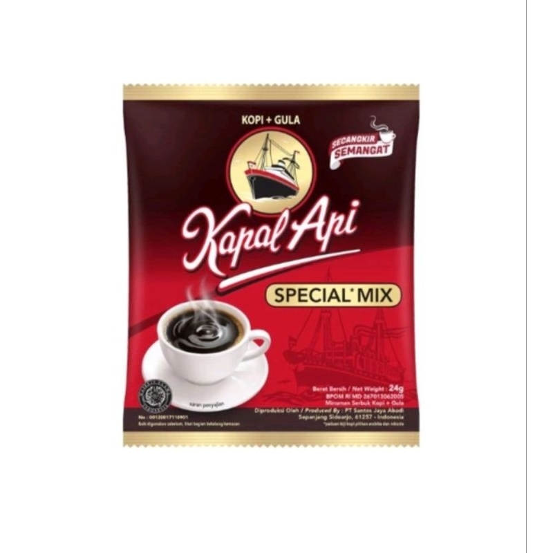 Kopi Kapal Api Special Mix terbuat dari paduan biji kopi berkualitas "Special" dan gula, menghasilkan aroma dan rasa yang jelas lebih enak, siap memberikan semangat untuk memulai hari.