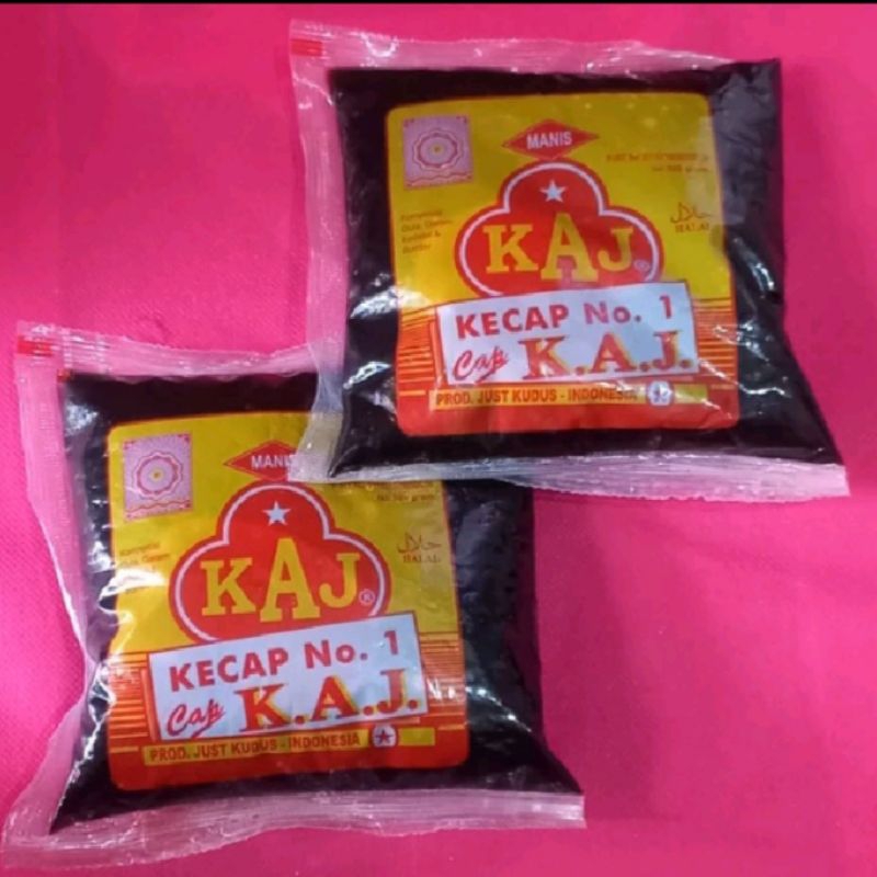 Kecap K A j adalah Kecap Khas Kudus Dibuat dari = Gula, Kedelai, Garam dan Bumbu Berat netto = 500 gram / pcs Bungkus Plastik