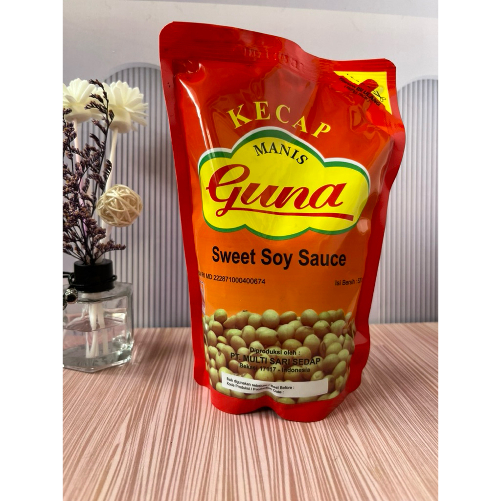 Kecap Manis Cap Guna adalah kecap manis yang dibuat dari kacang kedelai pilihan dan diolah secara tradisional, menghasilkan rasa manis yang gurih, harum, dan bersih. Kecap ini memiliki aroma khas yang disukai banyak orang dan cocok digunakan sebagai bumbu dasar dalam berbagai hidangan Indonesia, seperti sate, nasi goreng, ayam goreng, dan semur.
