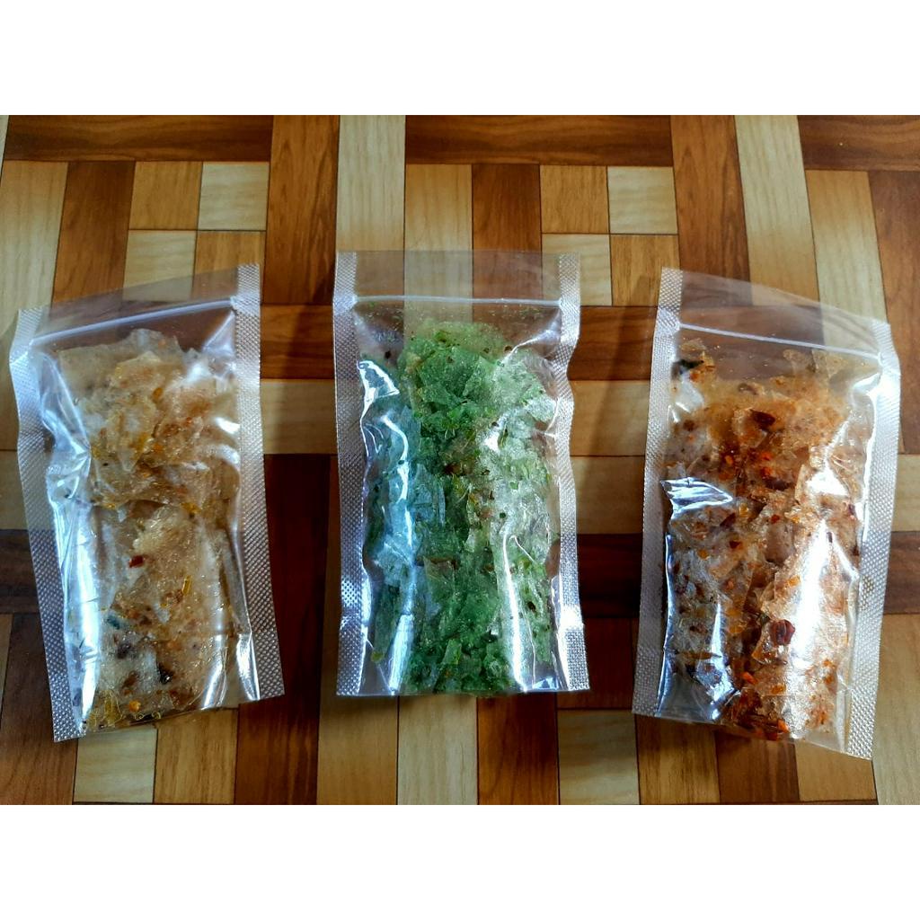kripca dibuat dari singkong juga bumbu rempah pilaha varian rasa ORIGINLS,CABE MERAH,CABE IJO,RUMPUT LAUT PEDAS YU ka buruuaannnnn order.P-IRT NO 20632060101130-26