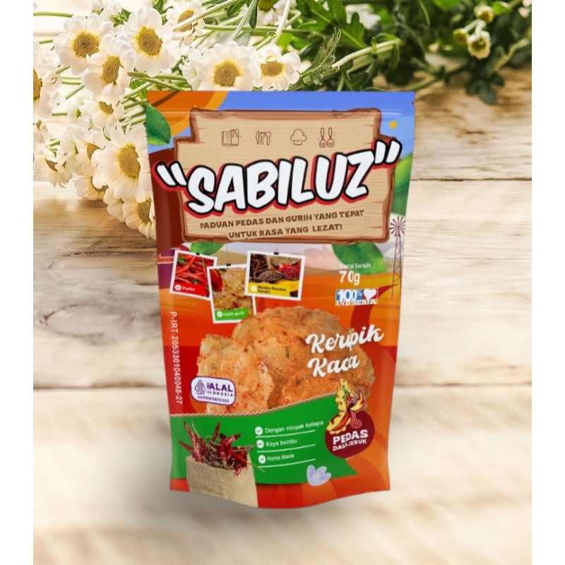 keripik yang bening seperti kaca yang di bumbui rempah rempah rasanya gurih pedas daun jeruk