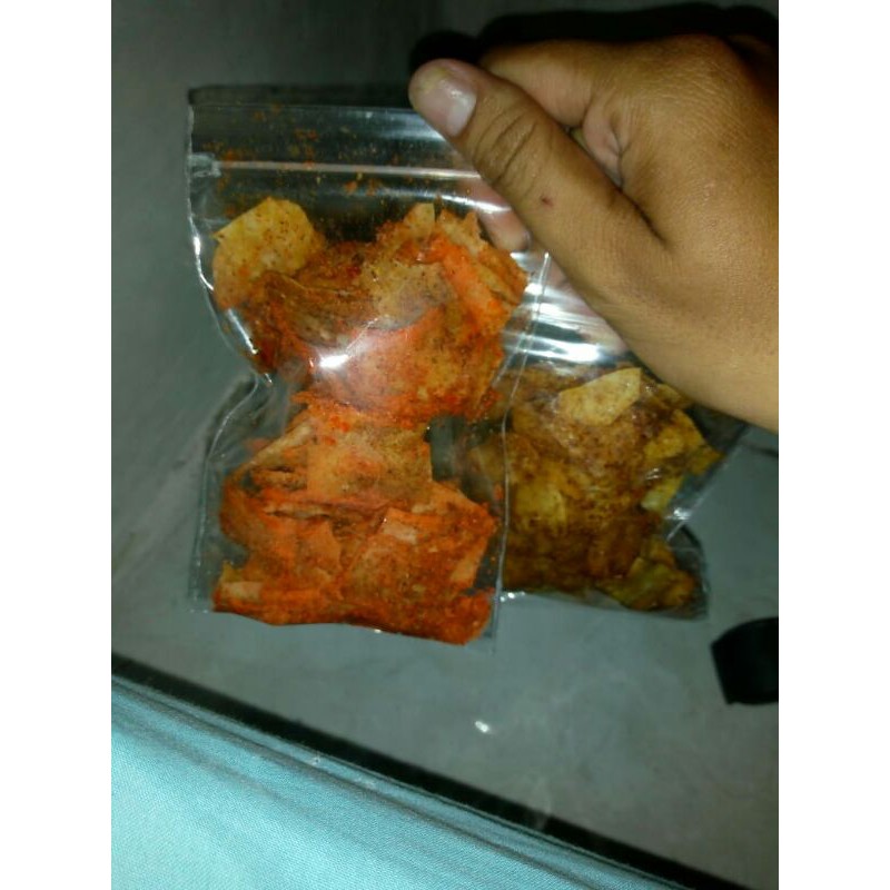 keripik pangsit rasa pedas ,gurih ,balado ,sapi panggang