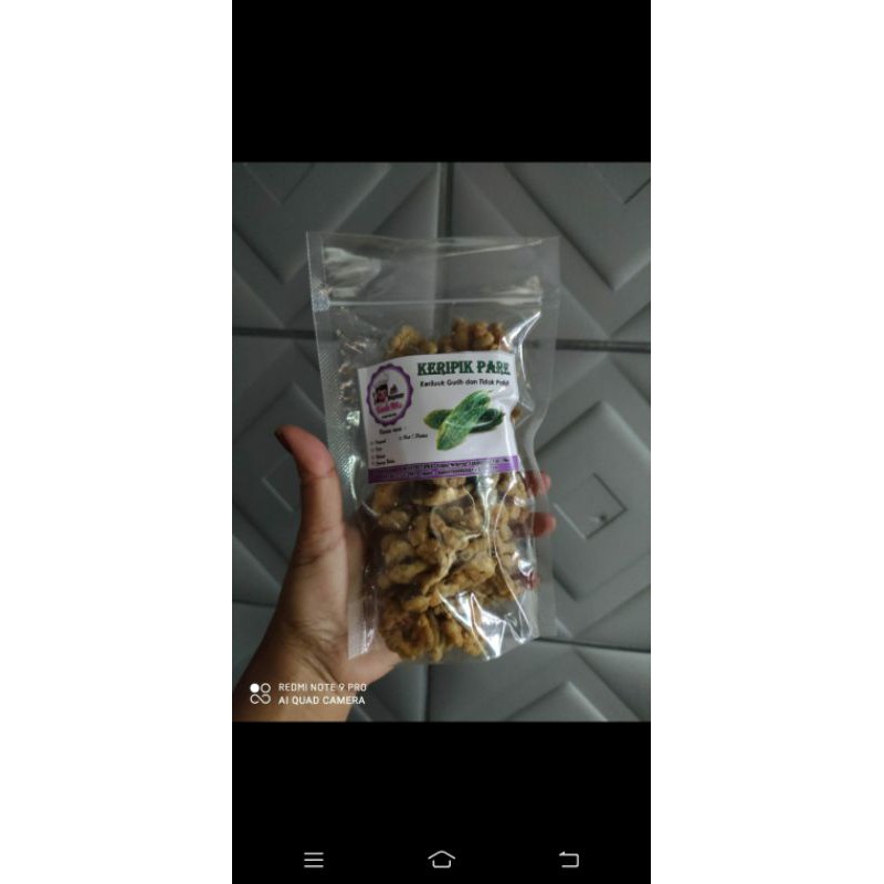 keripik dari pare segar berat 100 gram rasanya kriuk gurih dan tidak pahit dan ada 5 varian rasa original,keju, balado, jagung bakar,pedas