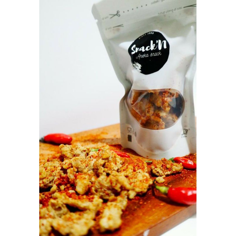 keripik usus yang disajikan dengan pedas yang nagih yang bisa dijadikan teman ngemil dan teman makan nasi