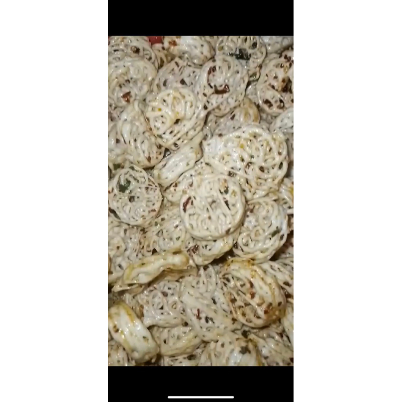 Kerupuk Rafael terenak dan terenyah kering kriuk dan bumbu melimpah menggunakan bumbu yang diolah/diracik sendiri, Cocok untuk menemani anda mangemil dan juga enak untuk dijadikan tambahan lauk, Rasa pedas nya bikin ga mau berhenti makan ditambah daun jeruk yang makin nampol rasanya.