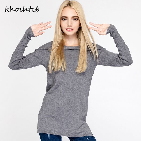 khoshtib женский свитер осень зима новая мода сплошной цвет тонкий свитер с капюшоном женщин топы повседневная верхняя обычная полная