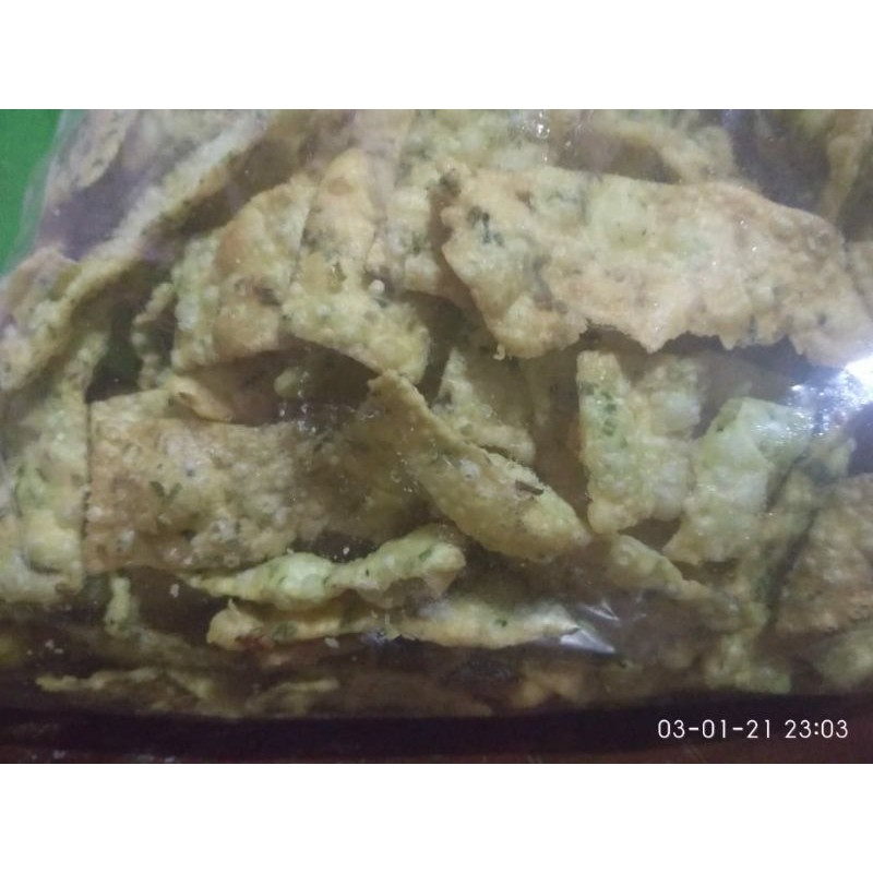 kripik pangsit rasa bawang
