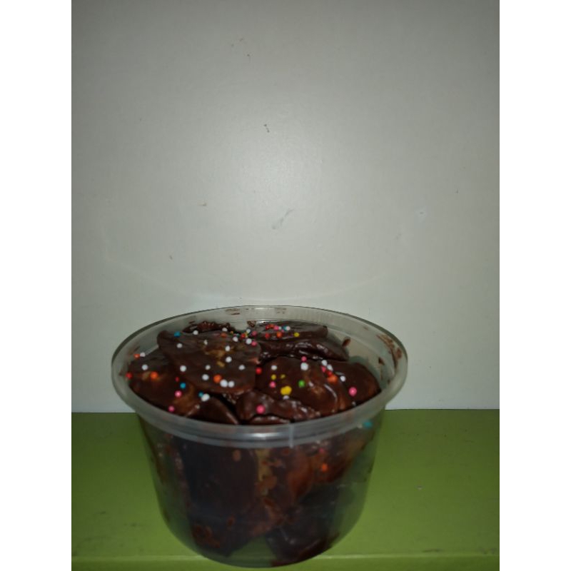 yang diolah dengan tangan sendiri. dilapisi coklat yg lezat dan manis. dan tanpa bahan pengawet.