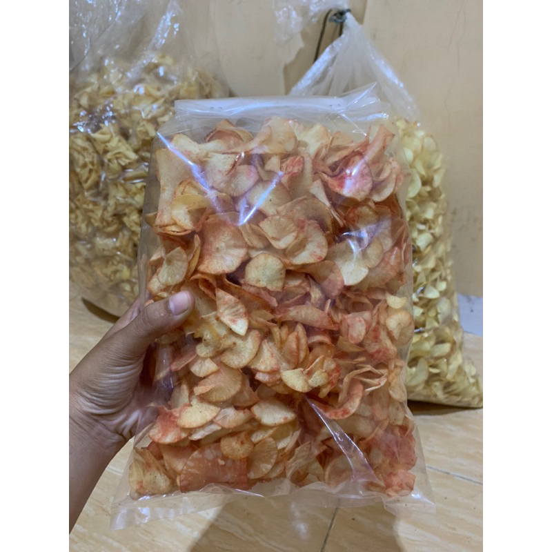 Keripik singkong merupakan makanan khas indonesia yang wajib kalian miliki saat sedang santai dengan sendiri atau dengan keluarga,pasangan,teman.