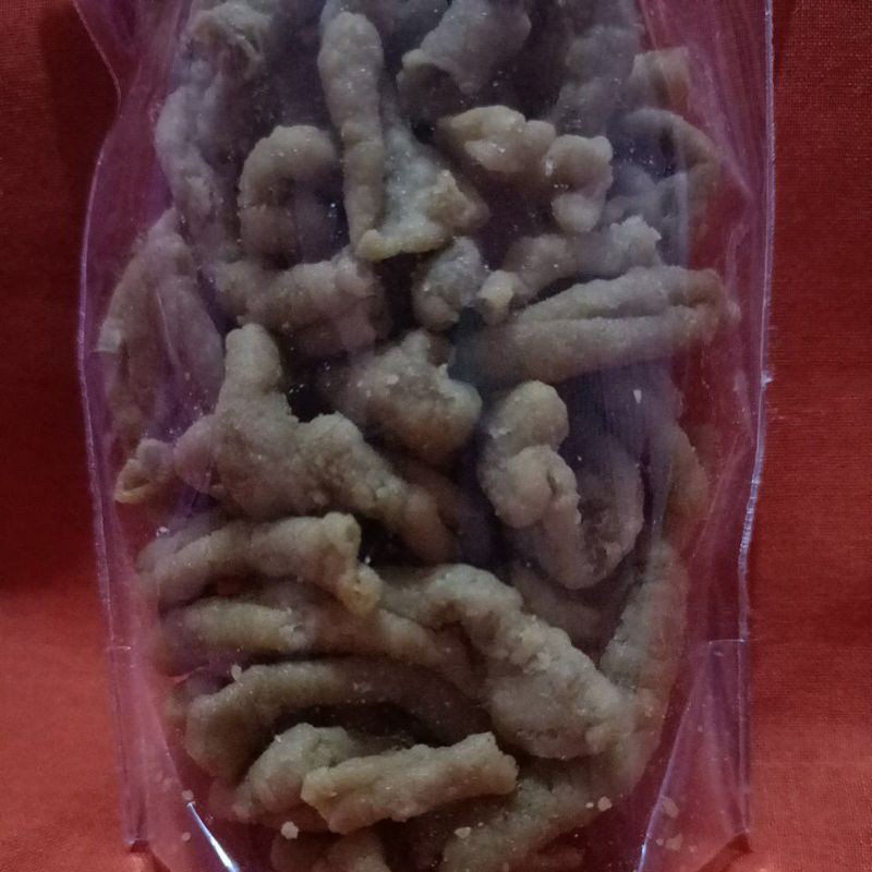usus ayam dibalut tepung, kemudian digoreng sampai kriuk saat dimakan