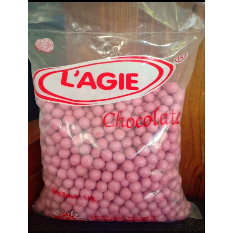 coklat L'agie minipink isi biscuits , kemasan 1000gr /1kg
