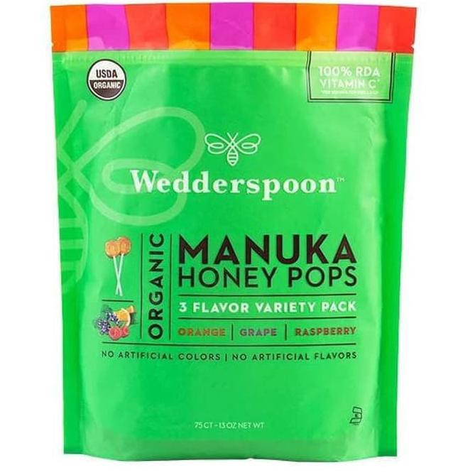 R1P8Wedderspoon, Organic Manuka Honey Pops For Kids, Orange, Grape & Raspberry, 24 Count