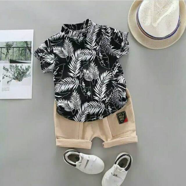 leaf set black (kemeja+celana pendek). perkiraan uia 3-12bulan
