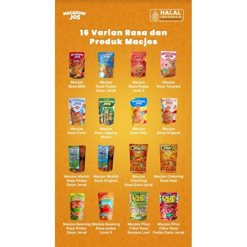 makanan ringan makaroni goreng dengan varian rasa