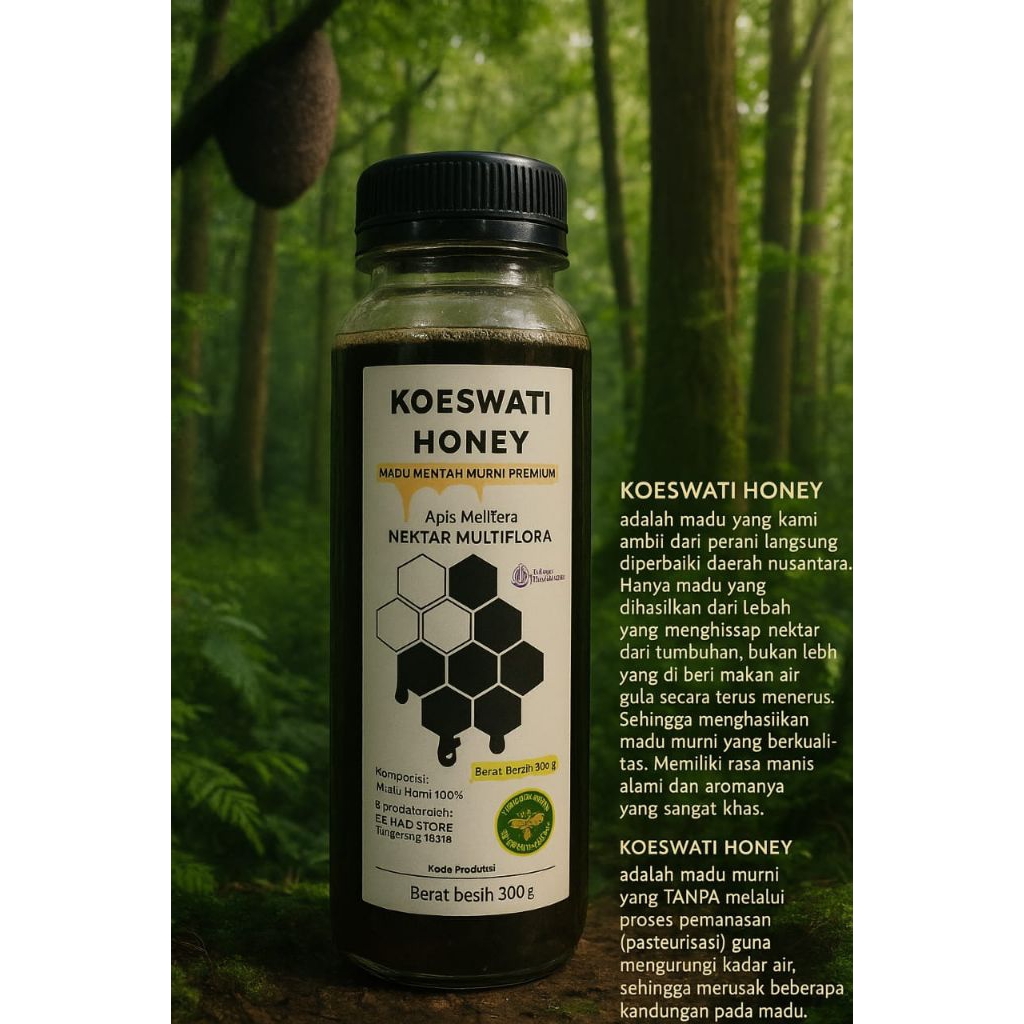 KOESWATI HONEY adalah madu murni yang tanpa melalui proses pemanasan (pasteurisasi) guna mengurangi kadar air sehingga merusak beberapa kandungan pada madu.