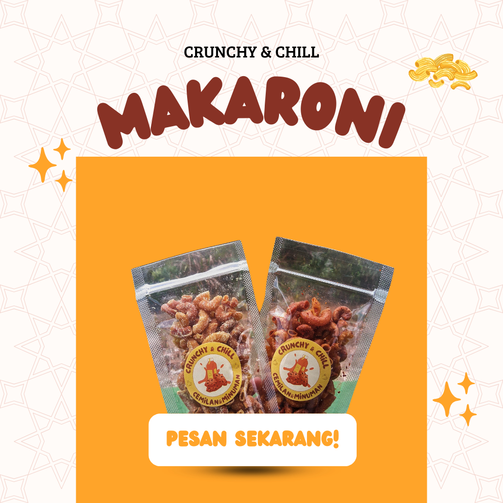 Makaroni, camilan gurih yang renyah dan penuh rasa! Terbuat dari makaroni pilihan yang digoreng renyah, kemudian dibalut dengan bumbu spesial yang kaya dan menggoda. Setiap gigitan memberikan sensasi gurih yang pas di lidah. Cocok untuk menemani waktu santai atau sebagai camilan seru kapan saja!