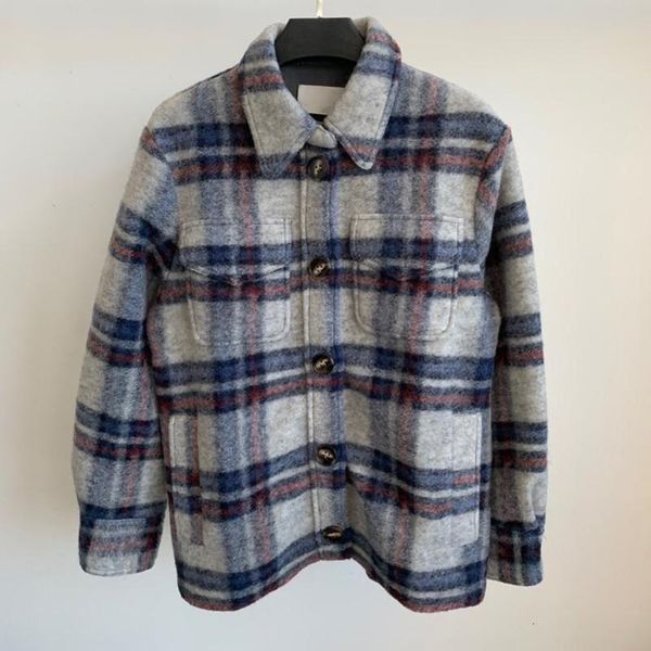 marant 19fw изабель марант клетчатая куртка из овчины мужчины женщины пара пальто повседневная уличная сине зеленая клетчатая верхняя одежда, Black;brown