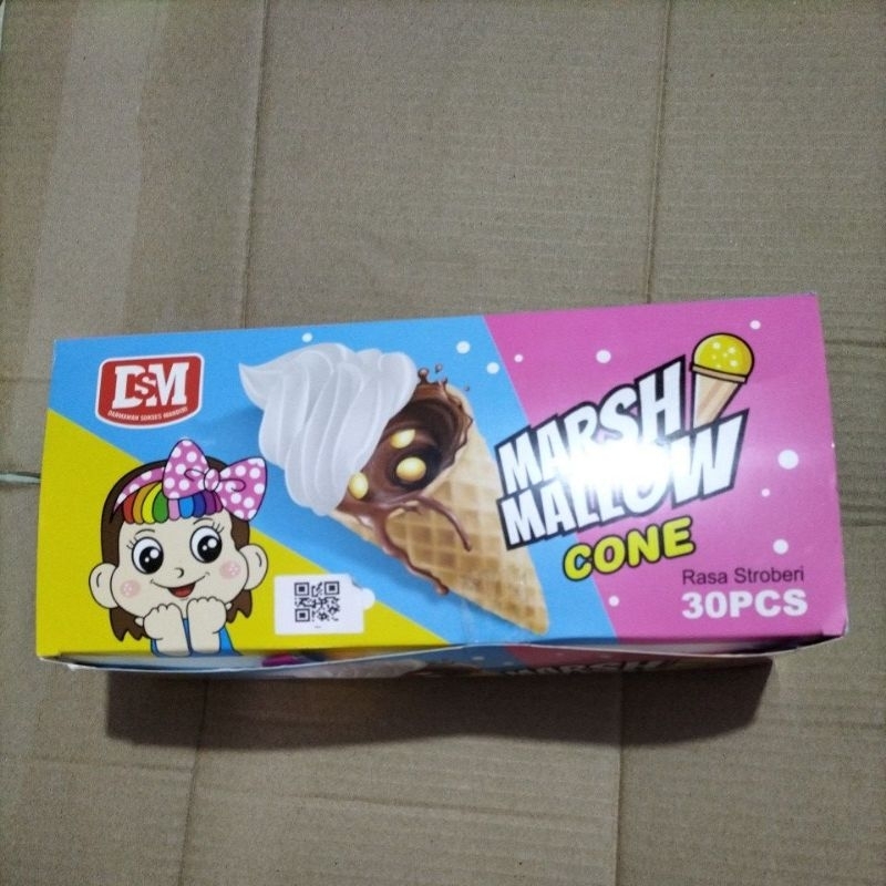 marsh mallow cone rasa strawberry isi 30 pcs