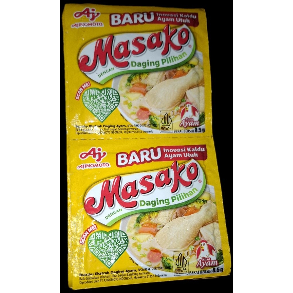 Masako adalah merek bumbu kaldu penyedap rasa yang diproduksi oleh Ajinomoto. Bumbu ini terbuat dari daging ayam dan sapi pilihan, serta rempah-rempah yang memberikan rasa gurih dan aroma khas pada masakan. Masako tersedia dalam berbagai varian rasa, termasuk ayam dan sapi, serta dalam berbagai ukuran kemasan.