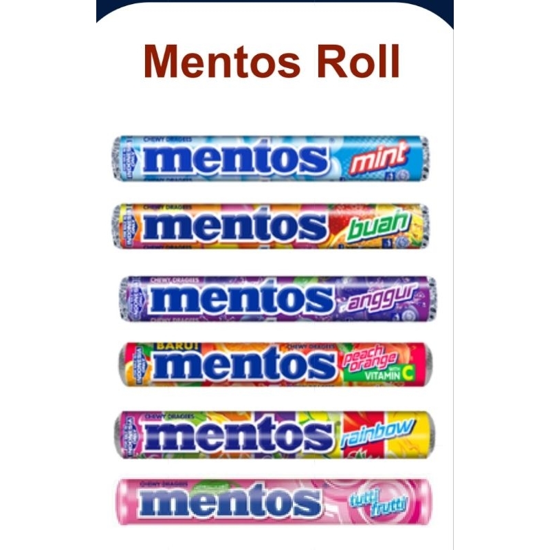 Permen Mentos Roll adalah produk permen yang dijual dengan empat varian rasa yang berbeda. Rasa anggur pada permen Mentos Roll memberikan sensasi rasa yang unik dan berbeda dari rasa permen pada umumnya. Selain itu, rasa semangka pada permen Mentos Roll memberikan sensasi rasa yang segar dan menyegarkan.