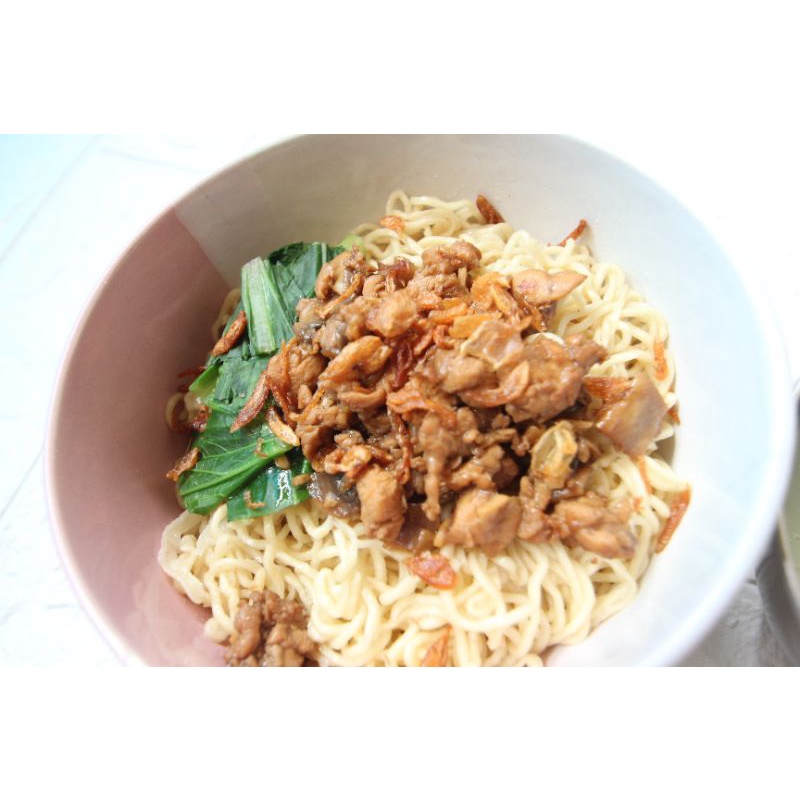 mie telur keriting dengan toping ayam jamur dan sayuran