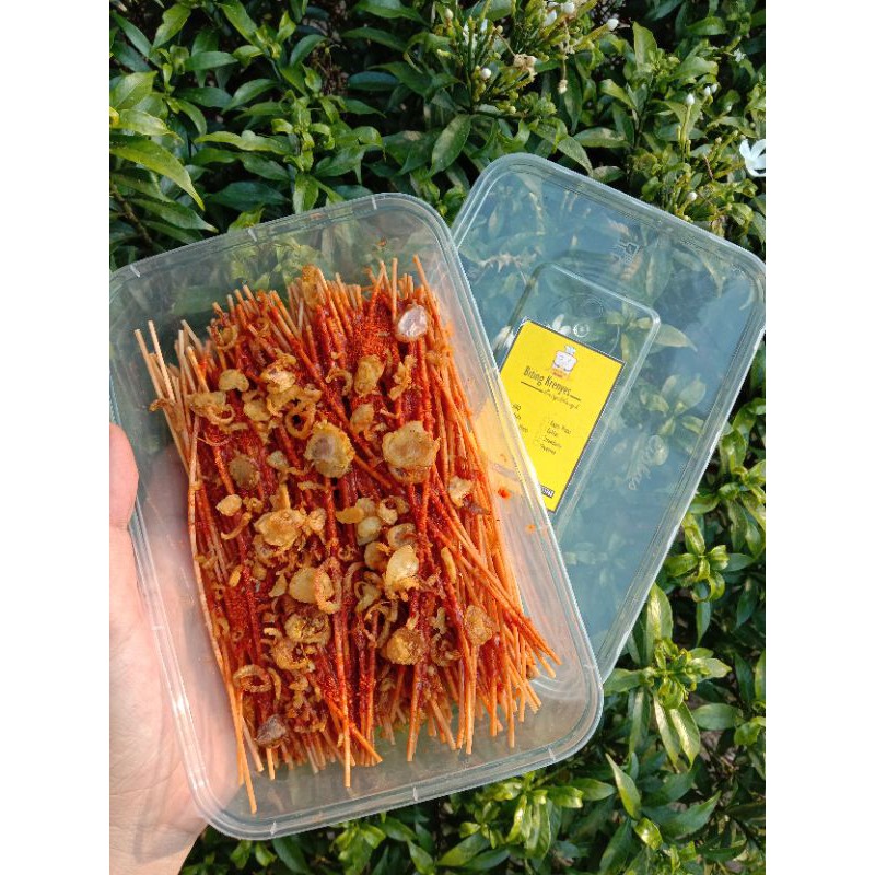 Mie lidi atau biting renyah dengan bumbu basah dan taburan bawang goreng