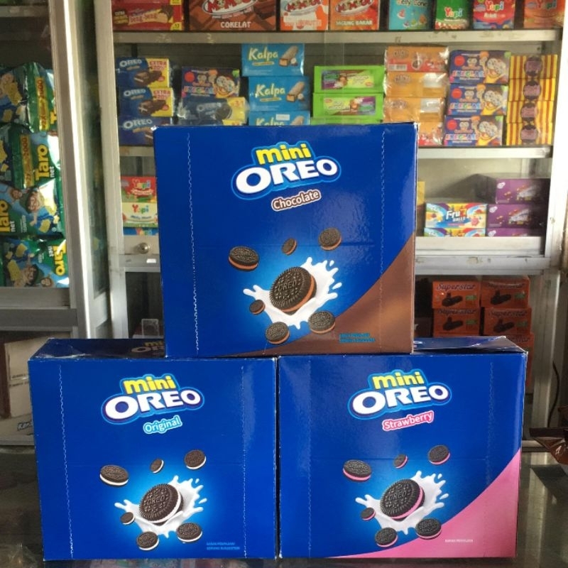 oreo mini dengan rasa coklat strawberry vanilla