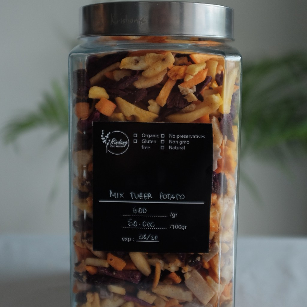 Cemilan sehat yang dibuat dari Ubi (Merah, Putih, Ungu), Taro / talas, dan Kentang yang diolah secara Vacuum Fry, yaitu metode penggorengan suhu rendah sehingga menghasilkan produk yang renyah tanpa mengurangi nutrisi yang terkandung di dalamnya.