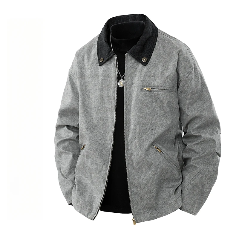 2025 New Jacket Men's Autumn High Quality Casual Corduroy Splicing Lapel Work Jacket Japanese Style Retro Loose Windbreaker Coat