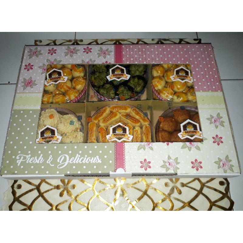 Paket Cookies dengan 6 macam cokies toples 250 gram (Nastar ,Kaastengel, Sagu keju, Cheeseball Palm sugar, Crunchy