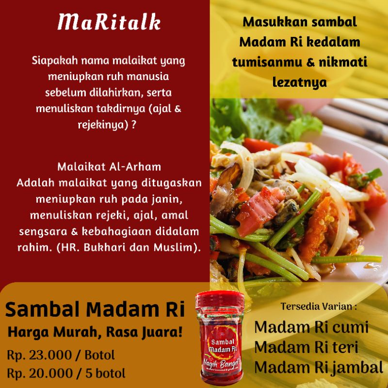 pembelian minimal 5 Rp. 20.000 , sambal Madam Ri