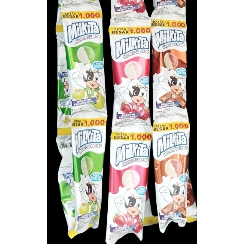 Milkita Lolipop renteng per pack isi 10 x 3 rasa coklat, stroberi, melon