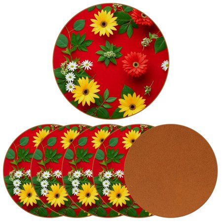 YZUOUZY Coasters Dining Table Decor 6 Pcs Round Microfiber Leather Bar Coasters Floral Abstract Art