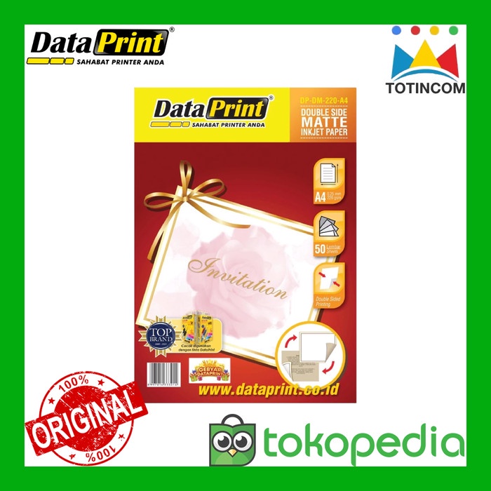 DataPrint Double Side Matte Paper adalah kertas foto berkualitas tinggi dengan permukaan matte yang memungkinkan pencetakan di kedua sisinya. Kertas ini memiliki tekstur seperti karton yang agak kaku, memberikan tampilan yang profesional dan elegan.