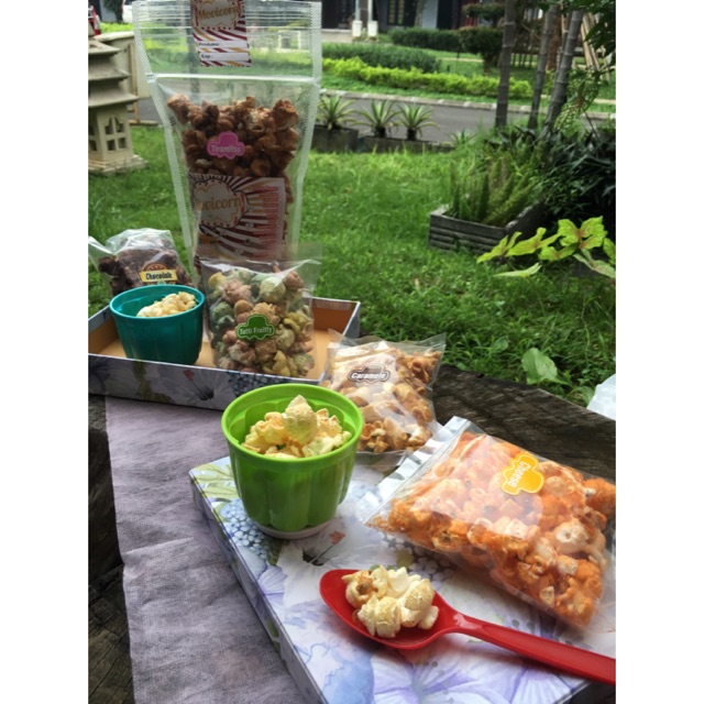 Popcorn terbuat dari biji jagung asli pilihan bermutu tingi. Sangat cocok dijadikan camilan karena jagung kaya akan serat dan rendah kalori.