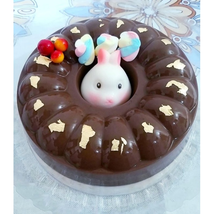 bawah puding vanila oreo atas puding coklat, toping bunny vanilla